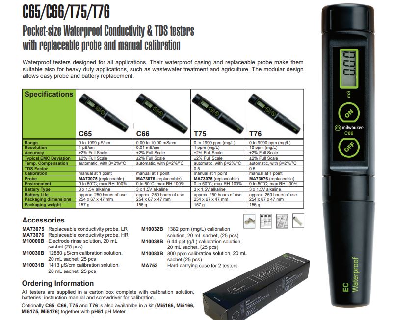 Range : 0 to 9990 ppm (mg/L)
